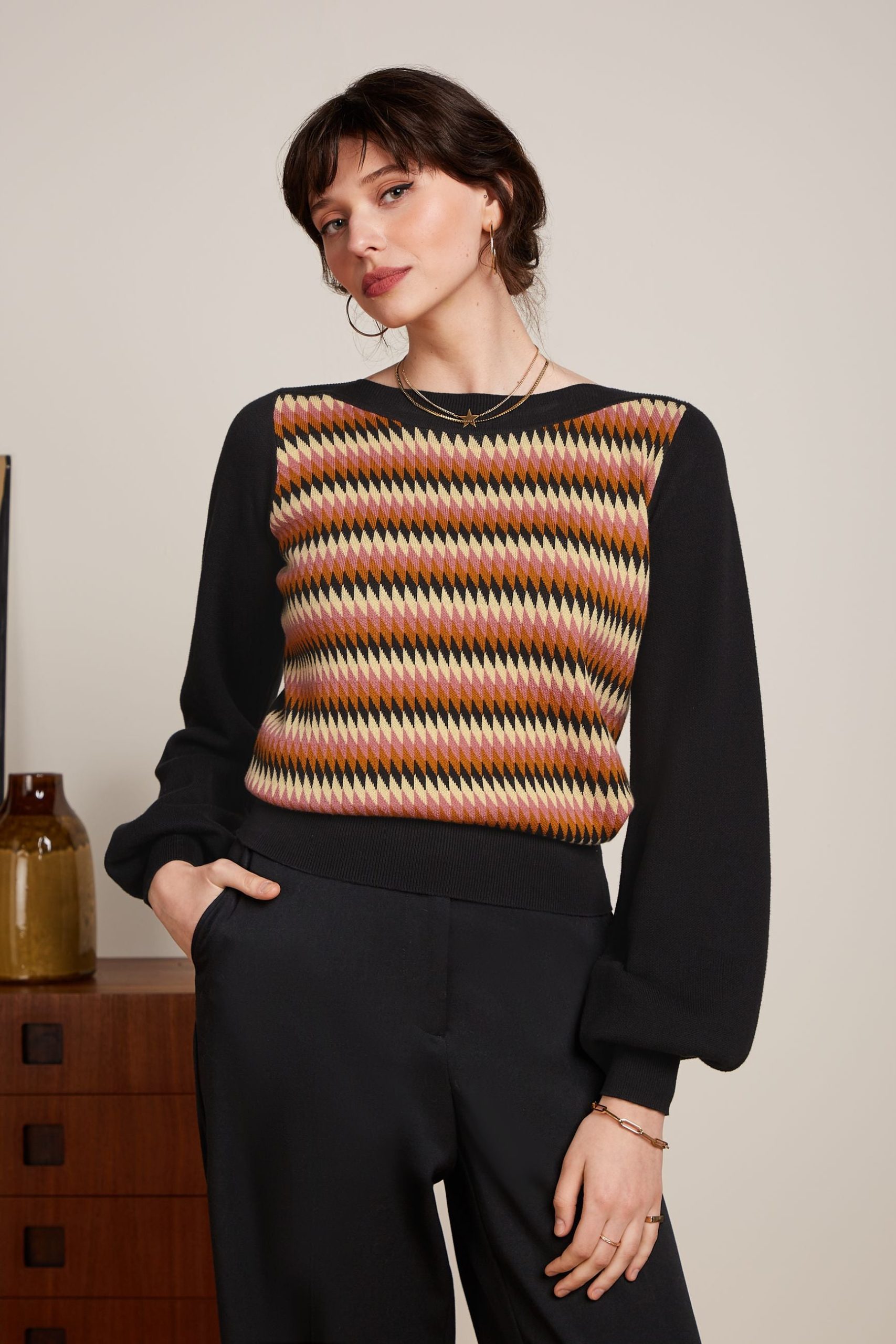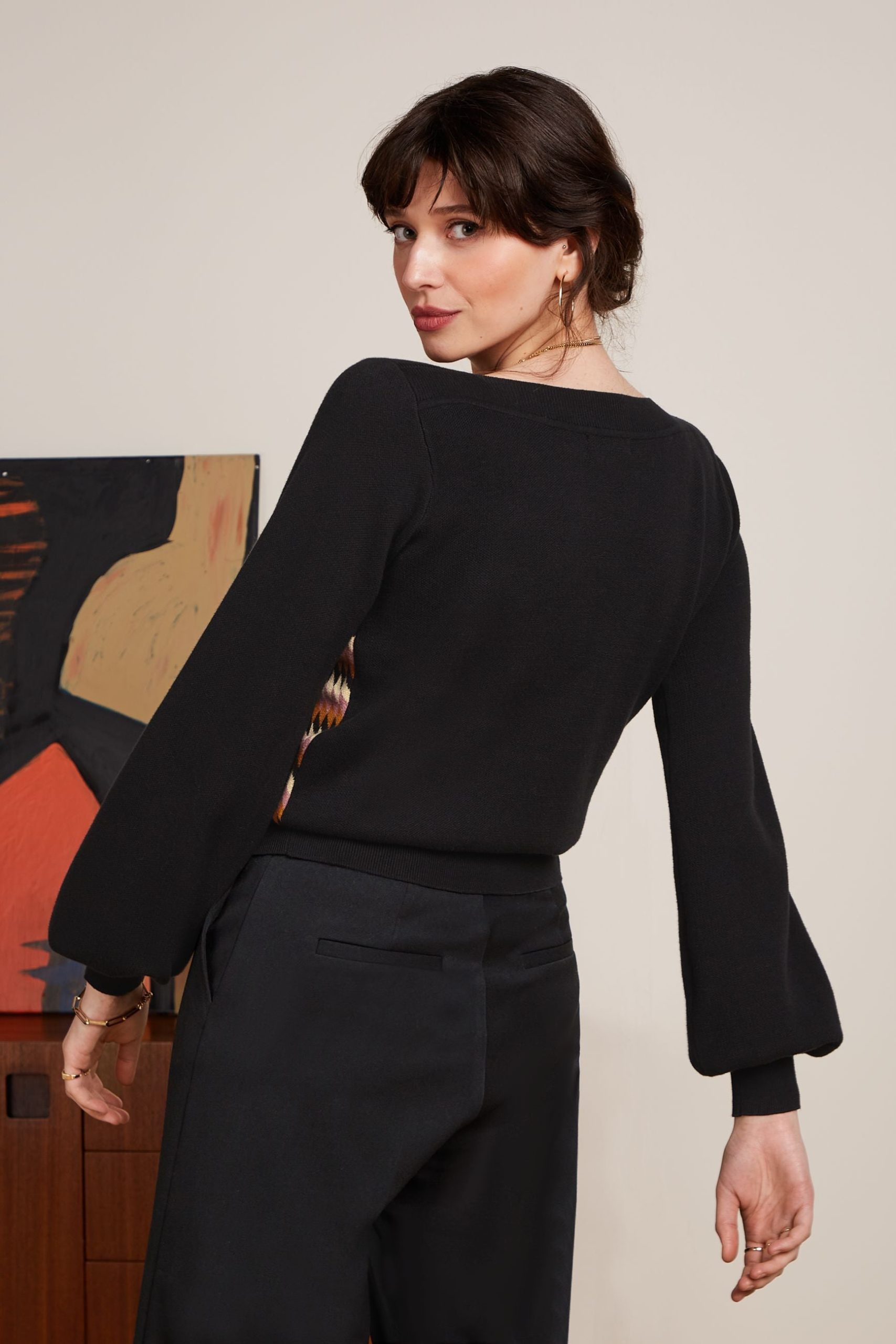 - Long balloon sleeves with cuffs