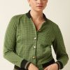 The Cleo Jacket Ivy Check combines sophistication with timeless style. Made from non-stretch knit jacquard, it features a glittering checkered print, long sleeves, and a knitted collar. Welt pockets and a button closure complete this elegant, polished look.