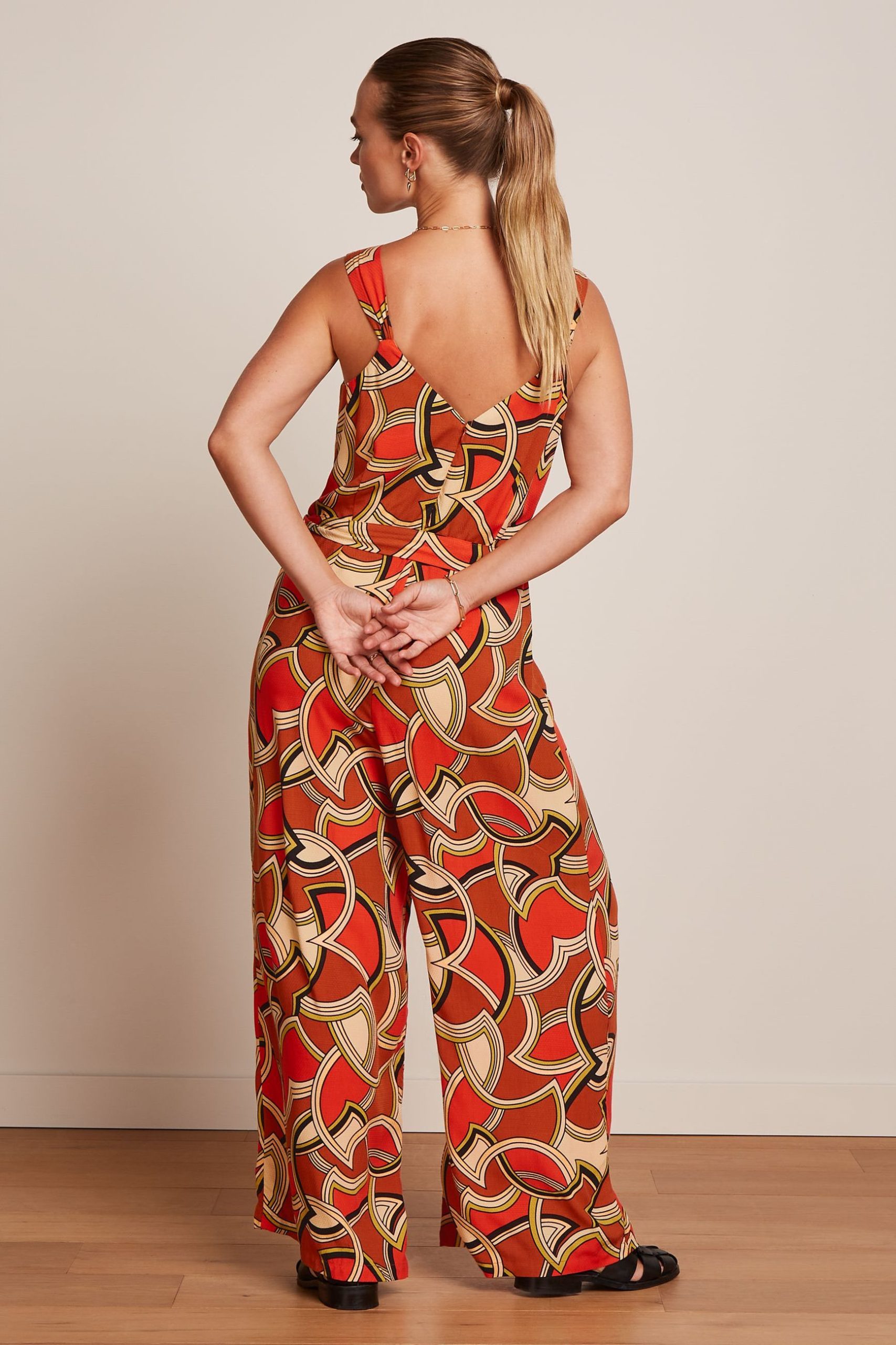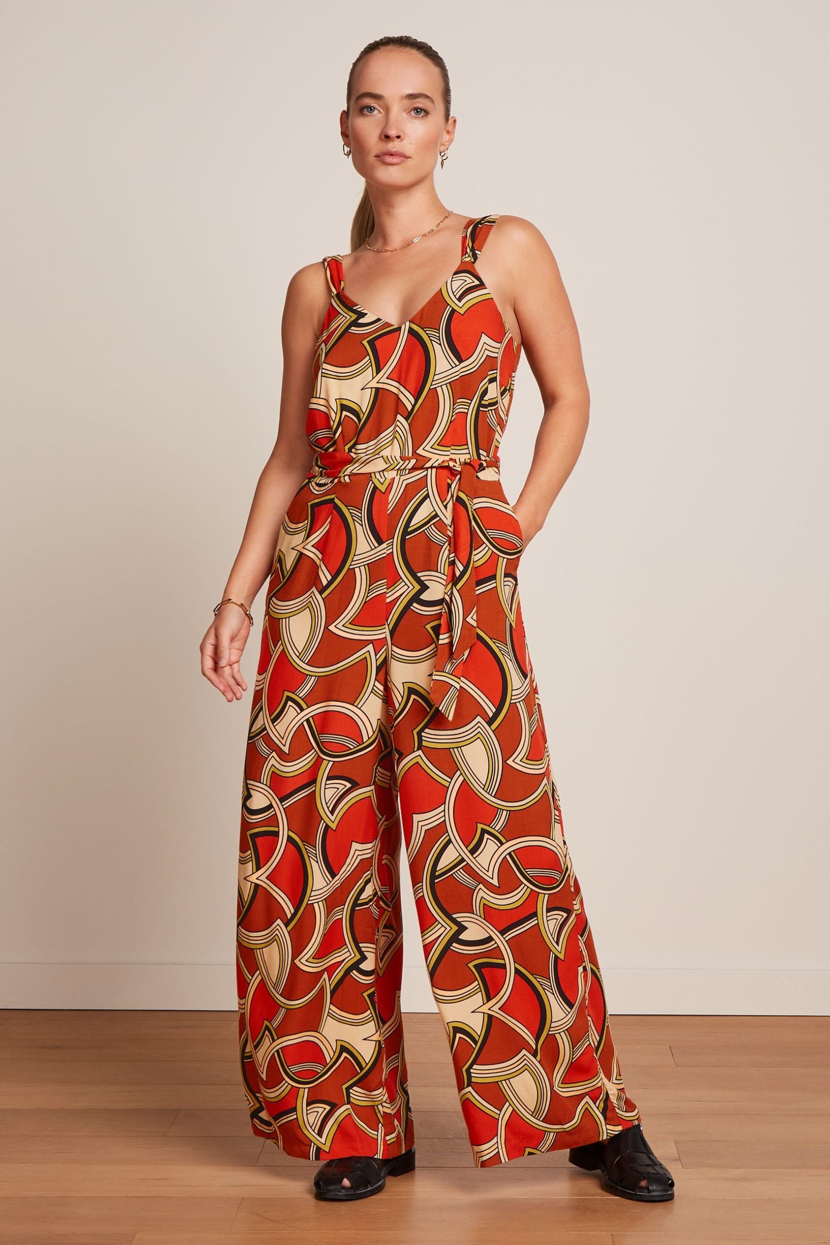 - Straight, wide legs