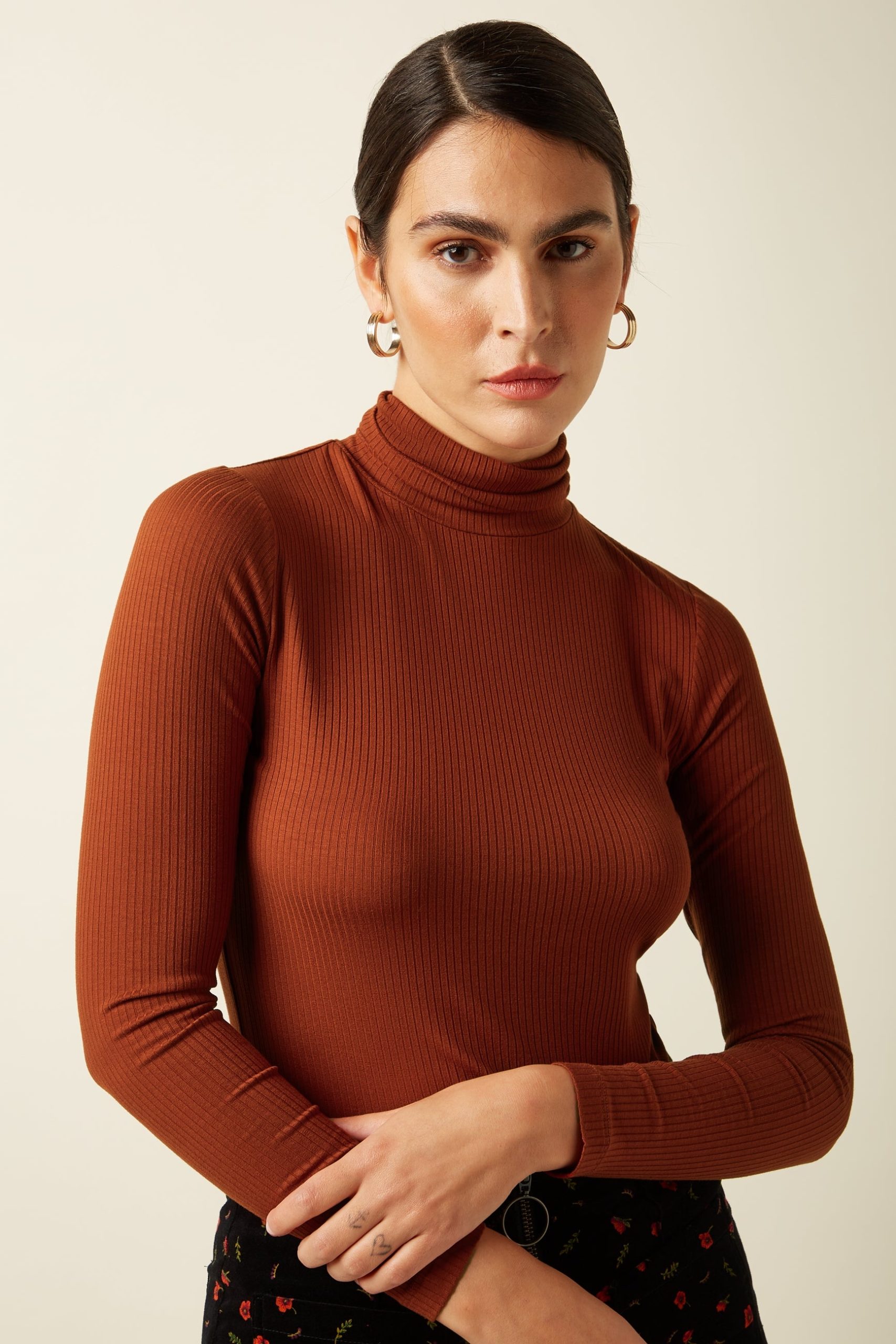 King Louie Women’s Products Rollneck Top Uni Rib | Spicy Brown – Uni Rib